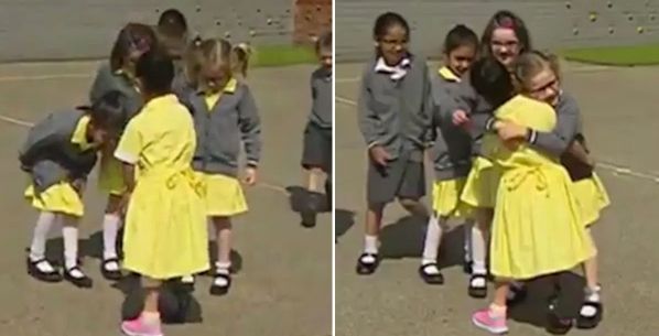 Ένα 7χρονο κορίτσι έδειξε στους φίλους της το νέο τεχνητό της πόδι και εκείνοι αντιδρούν με χαρά και μια μεγάλη αγκαλιά. Το στιγμιότυπο απαθανατίστηκε με ένα βίντεο, προκαλώντας συγκίνηση. Η μικρή Anu που στερήθηκε το ένα της πόδι αμέσως μετά τη γέννησή της, μπαίνει μέσα στο προαύλιο του σχολείου και όλοι οι μικροί της φίλοι τρέχουν να την υποδεχτούν.