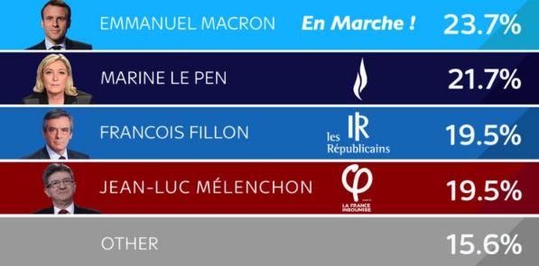 Ο 39χρονος κεντρώος Εμανουέλ Μακρόν και η ακροδεξιά Μαρίν Λεπέν ήταν τα κεντρικά πρόσωπα στα πρωτοσέλιδα του γαλλικού Τύπου με τον πρώτο να έχει την τιμητική του, αφού τον χαρακτηρίζει ήδη επόμενο πρόεδρο της Γαλλίας.