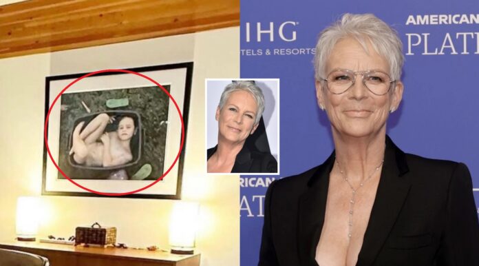 Σφοδρές αντιδράσεις προκάλεσε στα social media η φωτογραφία ενός γυμνού παιδιού σε ένα κουτί στο γραφείο της ηθοποιού Τζέιμι Λι Κέρτις.