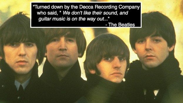 Το διασημότερο μουσικό κουαρτέτο που έχει γνωρίσει ο κόσμος ποτέ απορρίφθηκε από πολλές δισκογραφικές εταιρείες στην αρχή της καριέρας του. Την 1η Ιανουαρίου 1962, οι Beatles ηχογράφησαν στο Λονδίνο 15 τραγούδια στην δισκογραφική Decca Records, η οποία στη συνέχεια τους απέρριψε κάνοντας ένα από τα μεγαλύτερα λάθη στην ιστορία της μουσικής βιομηχανίας.