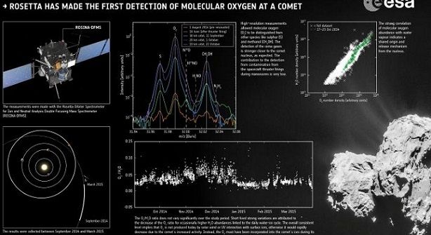 Το ευρωπαϊκό διαστημικό σκάφος Rosetta ανακάλυψε οξυγόνο σε αφθονία στην ατμόσφαιρα του κομήτη Τσούρι, κάτι που κατέπληξε τους επιστήμονες! Εκτιμούν μάλιστα ότι ίσως θα πρέπει να επανεξεταστούν οι θεωρίες τους για τον σχηματισμό του ηλιακού μας συστήματος.