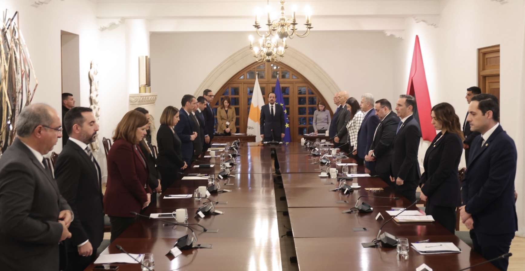 Μονόλεπτος σιγή στη μνήμη του πρώην Προέδρου της Δημοκρατίας Γιώργου Βασιλείου τηρήθηκε από τον Πρόεδρο της Δημοκρατίας κ. Νίκο Χριστοδουλίδη και τα μέλη του Υπουργικού Συμβουλίου κατά την έναρξη της έκτακτης συνεδρίασης του Σώματος που πραγματοποιήθηκε το απόγευμα, στο Προεδρικό Μέγαρο, για να αποφασιστούν οι δέουσες τιμές που θα αποδοθούν στον πρώην Πρόεδρο της Δημοκρατίας.