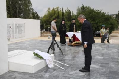“Η επιλογή σας να περιφρονήσετε τη ζωή και να επιλέξετε την αθανασία της ψυχής”, είπε ο Υπουργός Άμυνας, “σας εντάσσει δαφνοστεφείς στο πάνθεον των ηρώων του έθνους μας” και “η ανιδιοτέλεια του χαρακτήρα σας αποτελεί το ζώπυρο με το οποίο θα ζωντανέψει η φλόγα που θα οδηγήσει τον τόπο μας σε ελευθερία, πρόοδο και ευημερία”.