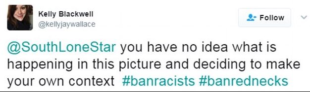 Ενας χρήστης αποφάσισε να απαντήσει στη φωτογραφία με μια άλλη φωτογραφία που δείχνει έναν λευκό να περπατά και να μην δίνει σημασία στο τι γίνεται γύρω του, όπως υποτίθεται πως έκανε η γυναίκα με τη μαντίλα.