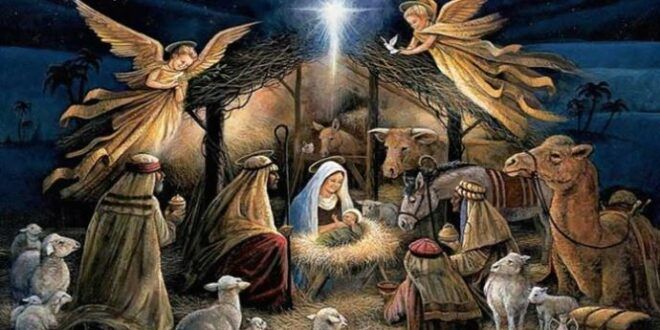 Μετά τη γέννηση του Ιησού, ένας άγγελος εμφανίσθηκε στους ποιμένες της περιοχής, αγγέλλοντας το χαρμόσυνο γεγονός, ενώ πλήθος άλλων αγγέλων έψαλλαν «Δόξα εν υψίστοις Θεώ και επί γης ειρήνη εν ανθρώποις ευδοκία». Ενώ συνέβαιναν αυτά, άστρο φωτεινό εξ Ανατολής οδήγησε τρεις Μάγους (Μελχιόρ, Γάσπαρ, Βαλτάσαρ) στη Βηθλεέμ, όπου μαζί με τους βοσκούς προσκύνησαν τον Θεάνθρωπο, προσφέροντάς του χρυσό, λίβανο και σμύρνα.
