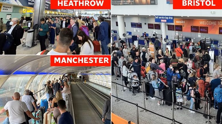 Η EasyJet και η TUI ακύρωσαν χθες εκατοντάδες πτήσεις ενώ σήμερα στο αεροδρόμιο του Μπρίστολ σχηματίστηκαν σήμερα το πρωί ουρές έξω από το κτίριο για τους επιβάτες που προσπαθούσαν να μπουν μέσα. Tην Δευτέρα 6 Ιουνίου, θα είναι η πιο πολυσύχναστη ημέρα από το 2019, με 2.864 αναχωρήσεις από το Ηνωμένο Βασίλειο και τον ίδιο αριθμό εισερχόμενων πτήσεων».