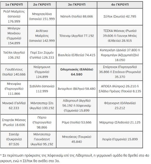 Δείτε ποιες είναι οι 27 ομάδες που «στελεχώνουν» τα τέσσερα γκρουπ δυναμικότητας, ενώ απομένουν ακόμα πέντε ομάδες, που θα προκύψουν από τους σημερινούς αγώνες της Τετάρτης (23/08), για να συμπληρωθεί το παζλ των «32».