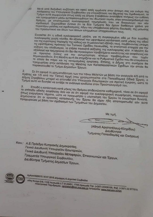Η τελευταία επιστολή του τμήματος πολεοδομίας “αδειάζει” τον Δήμαρχο Στροβόλου ο οποίος τώρα θα προσπαθήσει να πείσει το Δημοτικό Συμβούλιο, να προχωρήσει σε προσφορές για πρόσληψη ιδιώτη μελετητή…