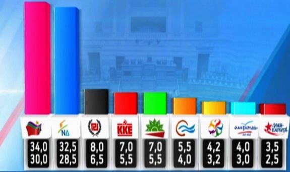 Τα αποτελέσματα του κοινού exit poll των εταιρειών που δίνουν πρωτιά στον ΣΥΡΙΖΑ, ωστόσο για την ώρα τίποτα δεν μπορεί να αποκλειστεί.