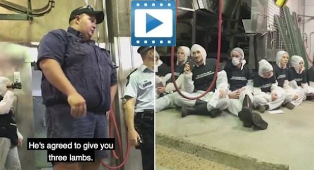 Εκεί λοιπόν βρήκαν 20 ακτιβιστές που είναι ενάντια στην κρεατοφαγία, οι οποίοι είχαν αλυσοδεχθεί μπροστά από τα μηχανήματα.