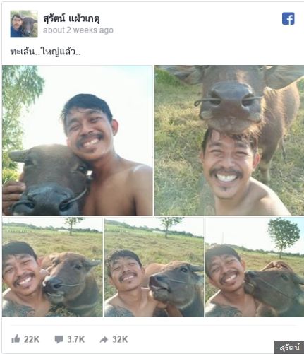 Όταν άρχισε να δημοσιεύει selfie με το αγαπημένο του βουβάλι, έγιναν αμέσως Viral, μετατρέποντάς τον ίδιο αλλά και τον Thong Kham σε διασημότητες στην Ταϊλάνδη.